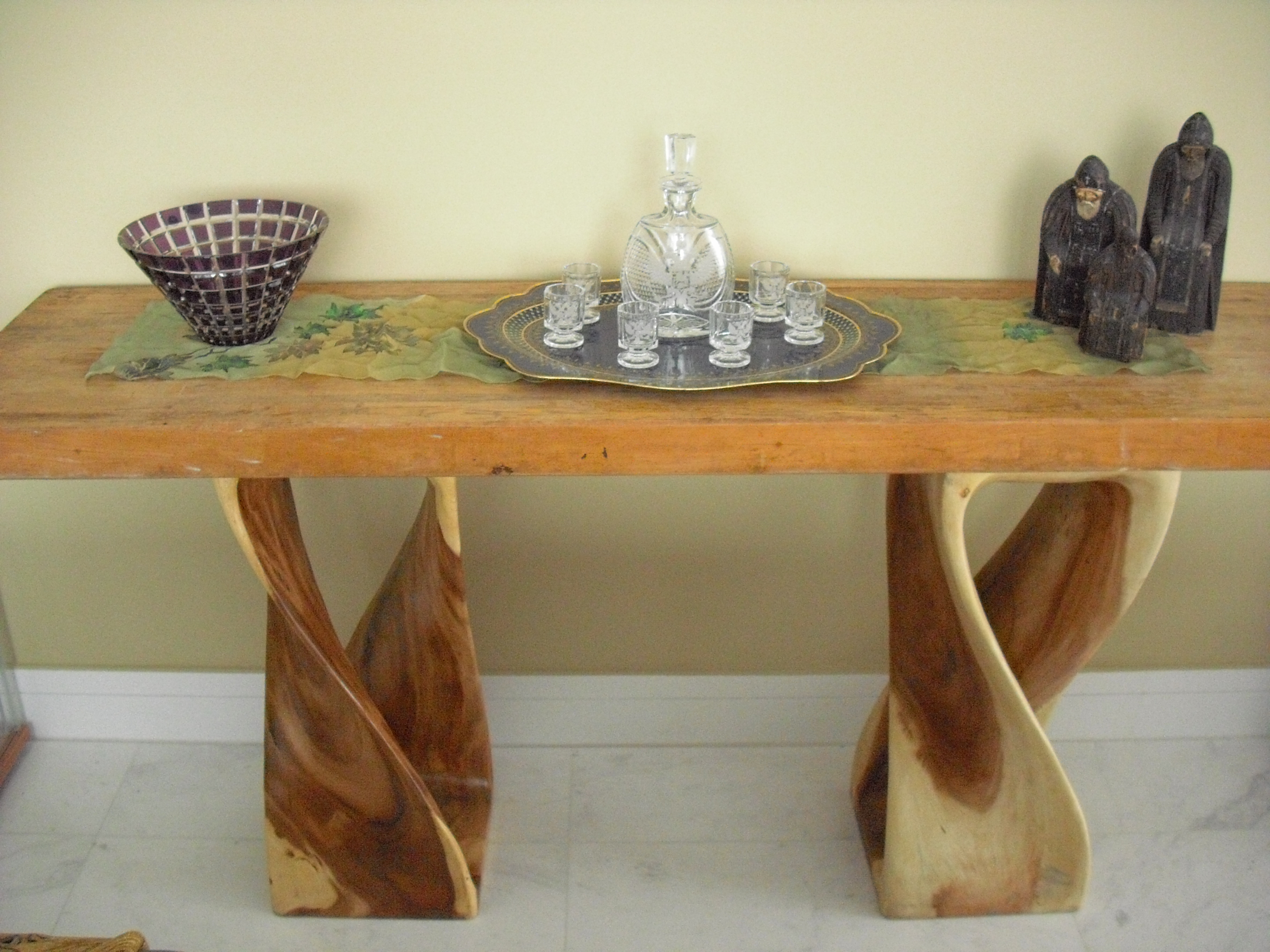 We just bought these beautiful stands made from Thai Mangowood. I love the flow of the grain and the coloring of the wood. It is positively inspiring.