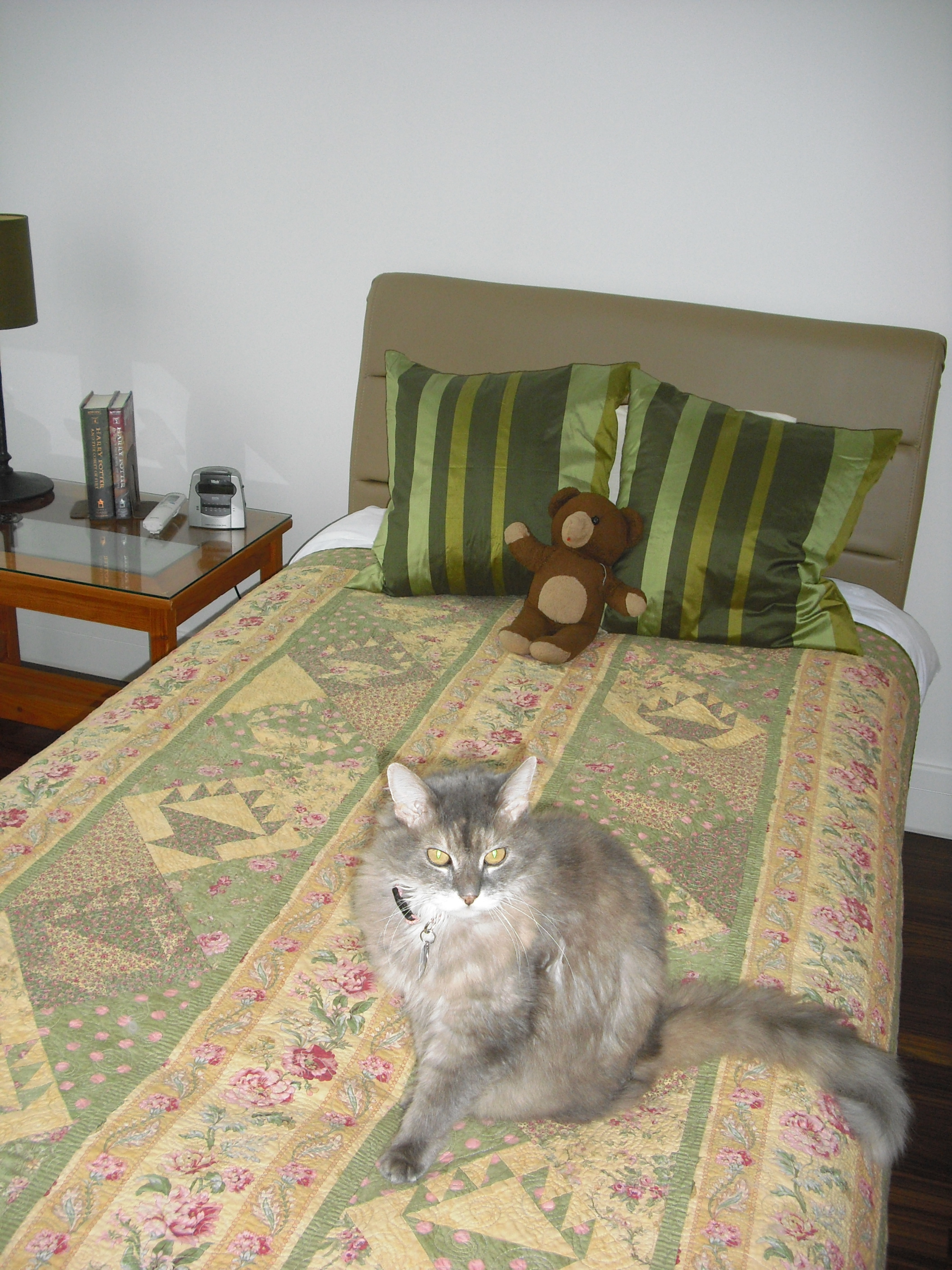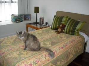 Wow! What a good-looking cat. Love that quilt she’s got her butt on.