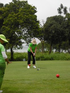 I have taken two golf lessons now, and with no other background, we took a two day trip to Batam, Indonesia over the Chinese New Year holidays. We really had a wonderful time. I played 9 holes on Thursday, and 18 holes on Friday! I didn’t keep score, but for playing golf for the 3rd time in my life, I didn’t think that I played that badly! On one Par 3 hole, I actually hit the green in three and sunk the ball in another 3. I know that isn’t spectacular, but for a beginner, I was excited!