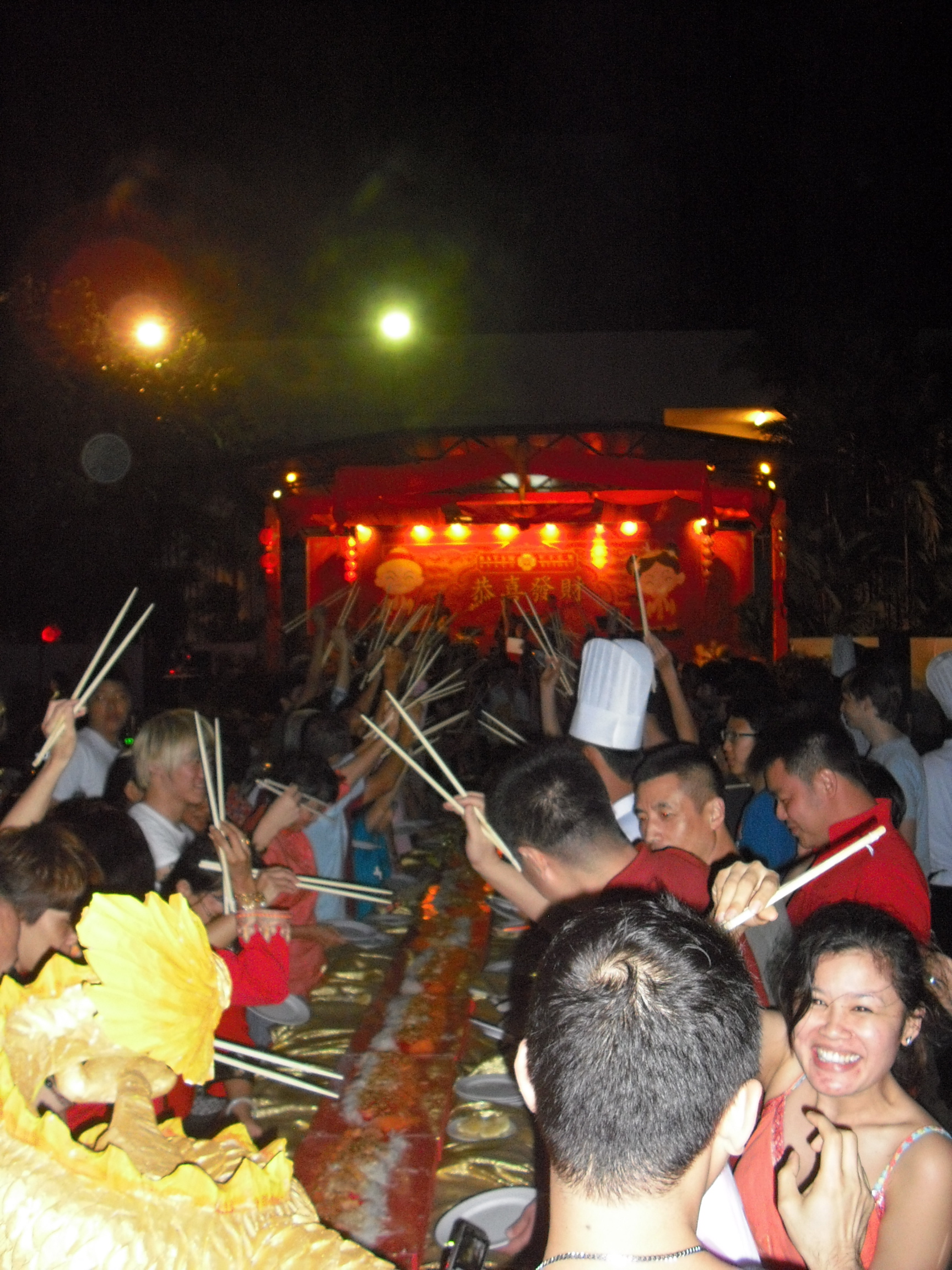 There was a celebratory dinner, Thursday, the 3rd of February, and it started with the traditional Yusheng toss. Basically, food items that are auspicious to the new year, are placed on a platter, and everyone takes chopsticks and they give everything a toss.