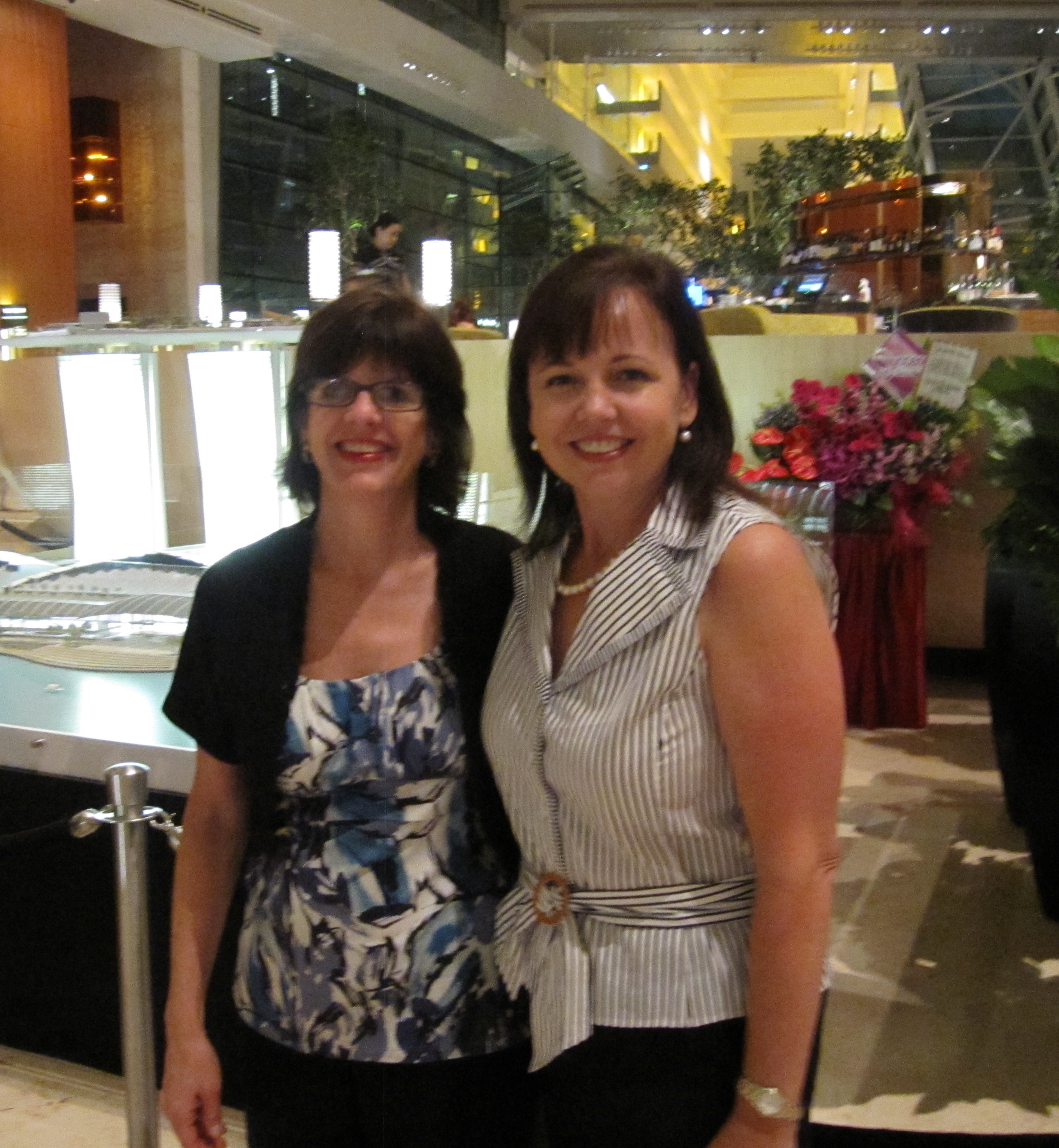 One of my dear quilting friends from Moscow, Laura came to Singapore with her husband on business. We had such a wonderful visit! Unfortunately, our time together was short, but we were able to shop! And yes, fabric was high on that list! Laura, lucky girl, was staying at the new Marina Bay Sands hotel here in Singapore. The hotel is a fabulous structure with three towers, and a “boat like structure” on the top with a bar, swimming pool, and views. The whole structure is over 55 stories tall.