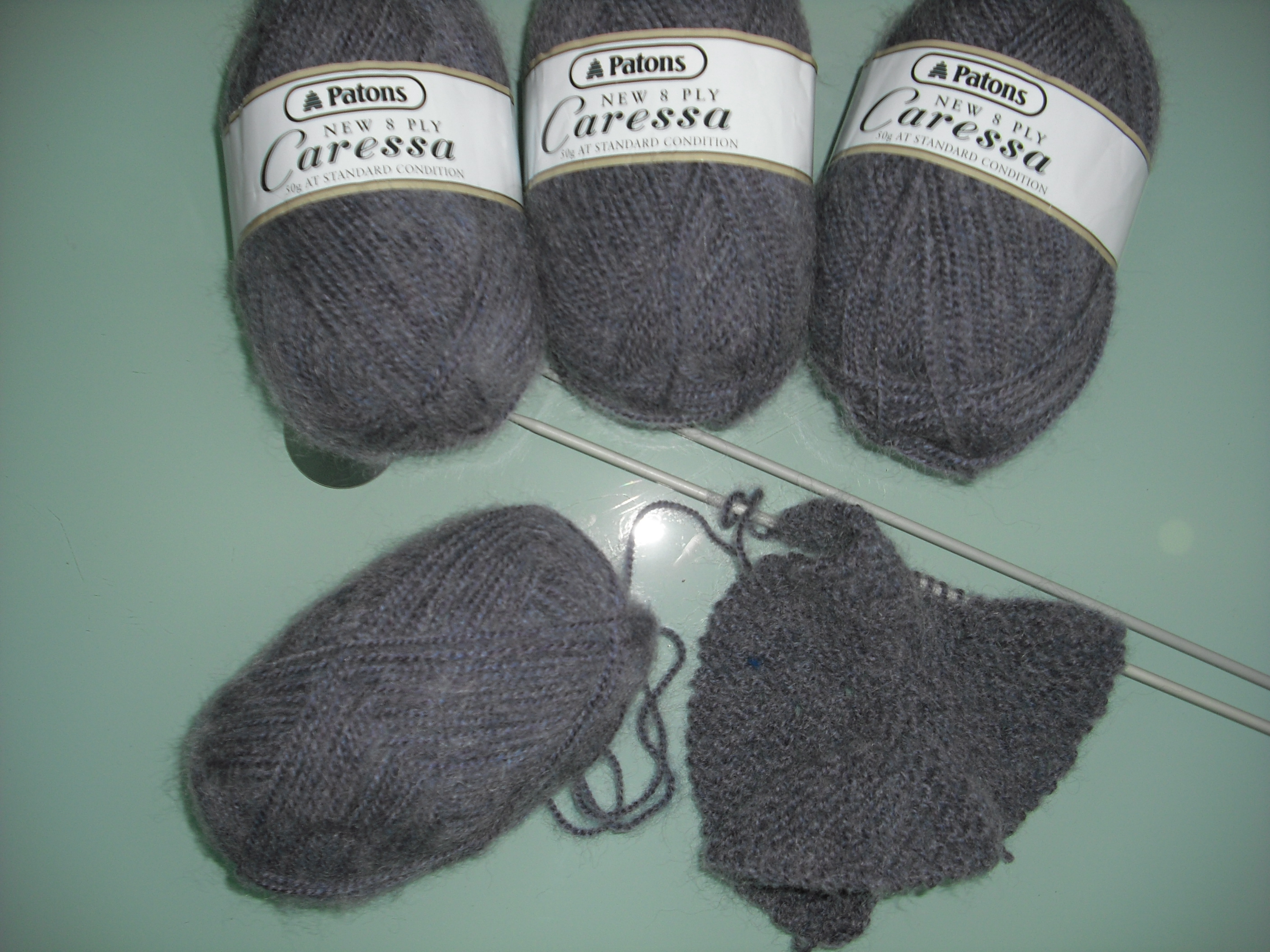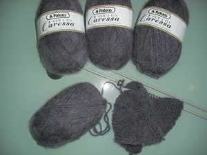 I also bought this beautiful Australian yarn. The color isn’t as true on the computer, but it is a lovely lavender-grey color. I am making my infamous Potato-chip scarf. I love these. They are simple and quick to make. See my post about these scarves: Potato-chip Scarves