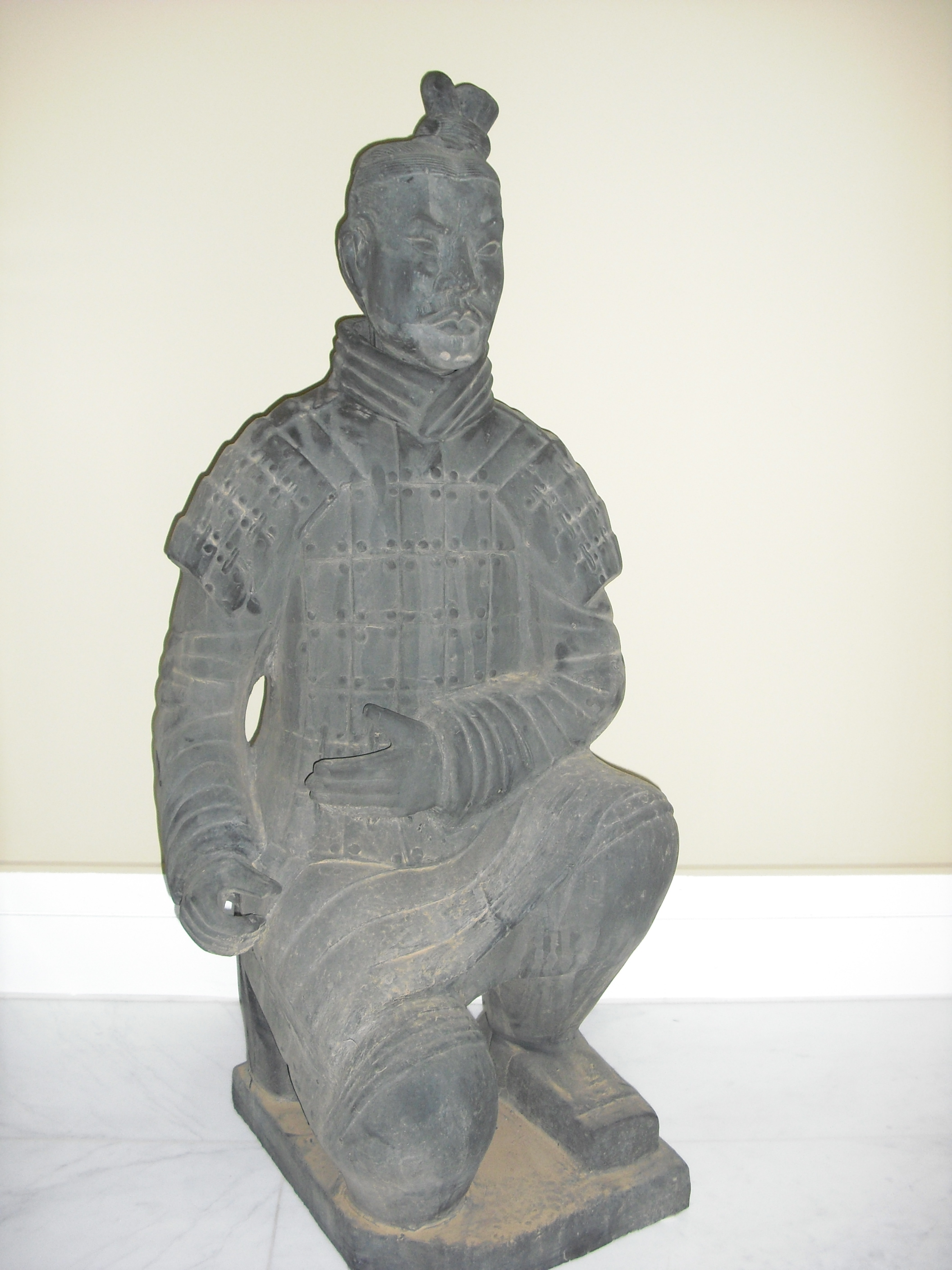 Look what I won! They love to have lucky draws here. They are like raffle prizes. Basically you put your name in a hat, and they pull for prizes. I went to an American Women’s Association coffee here in Singapore, and was lucky enough to win this great prize, a very large terra cotta warrior – the archer. We went to Xian, China and saw the terra cotta warriors in person. That was one of my favorite trips in all our travels. The warriors are truly fascinating, and quite amazing to see en masse. We went to the terra cotta warrior “factory” to see them being made. Factory is somewhat of a misnomer. It basically consists of different warehosue rooms with various people stomping out the clay, others molding the warriors, and still others packaging, and selling them. I unfortunately, bought two small versions. I always regretted that, and wished I had bought larger ones. Well now, I have a really large one! he is almost a meter high! He is busy protecting our entryway.